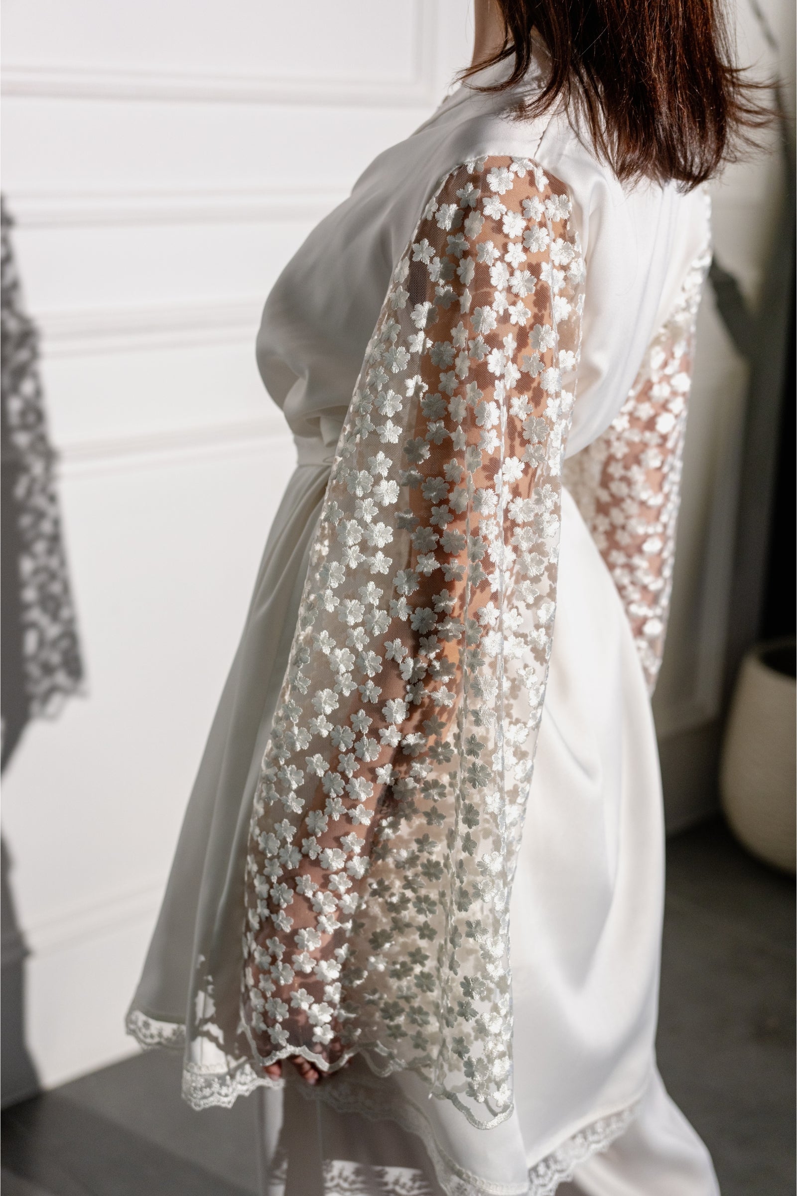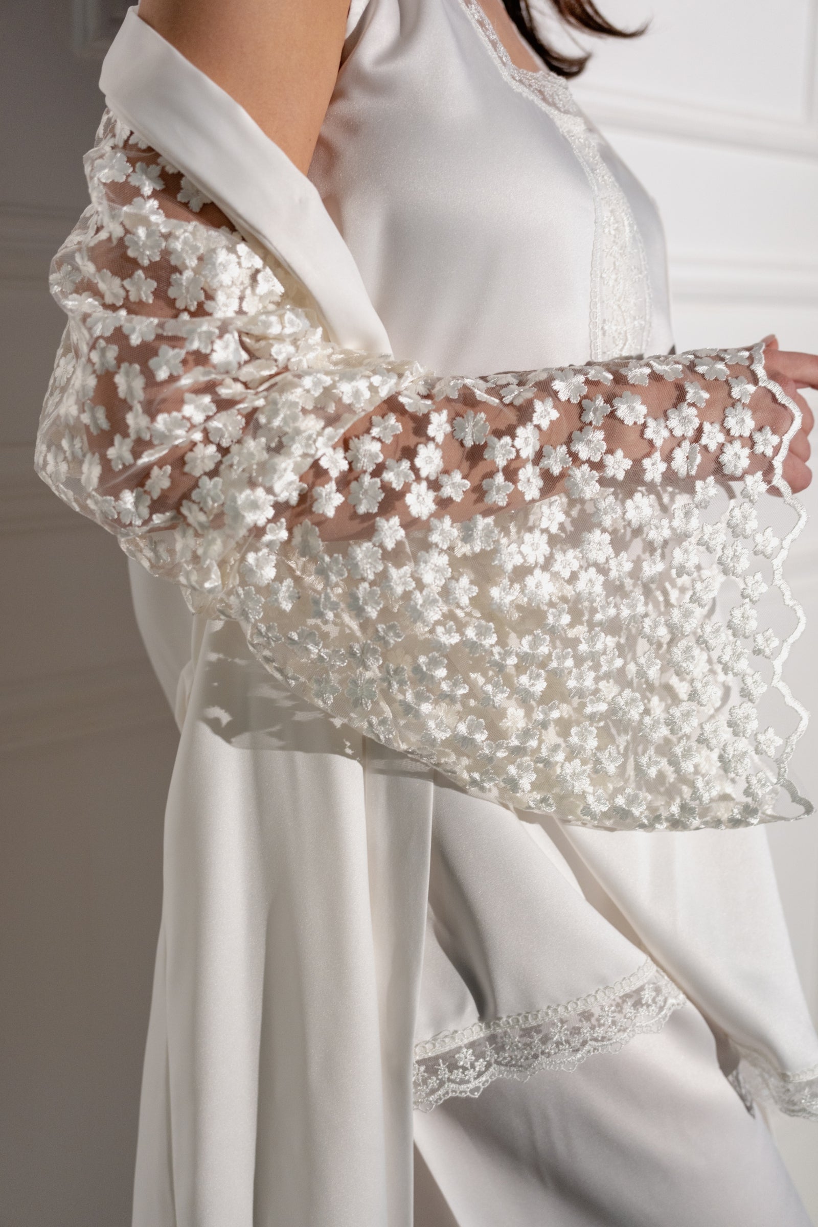 Luxury Pajama Set with Elegant Embroidered Lace Sleeves