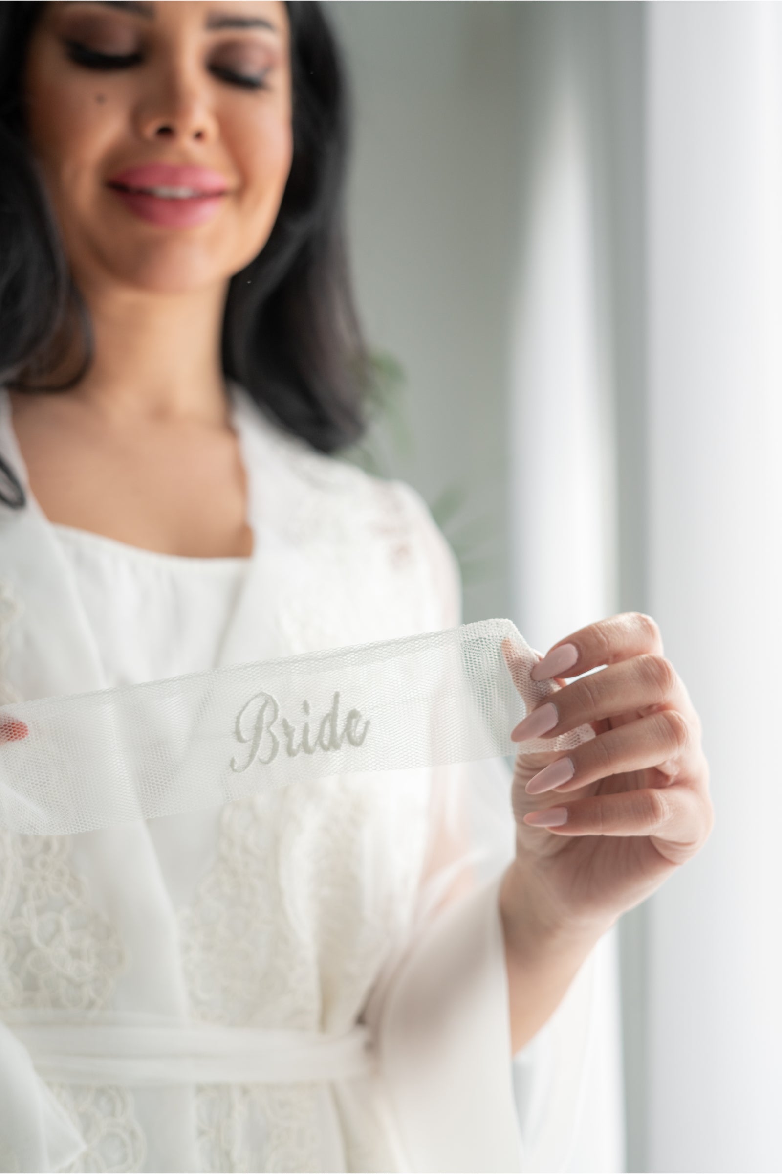 Luxurious and Elegant Bridal Lace Robe And Built , made from exquisite French lace, hand-embroidered with care, this robe adds a touch of sophistication to your special day. A must-have piece for any bride seeking elegance, style, and unforgettable moments.
