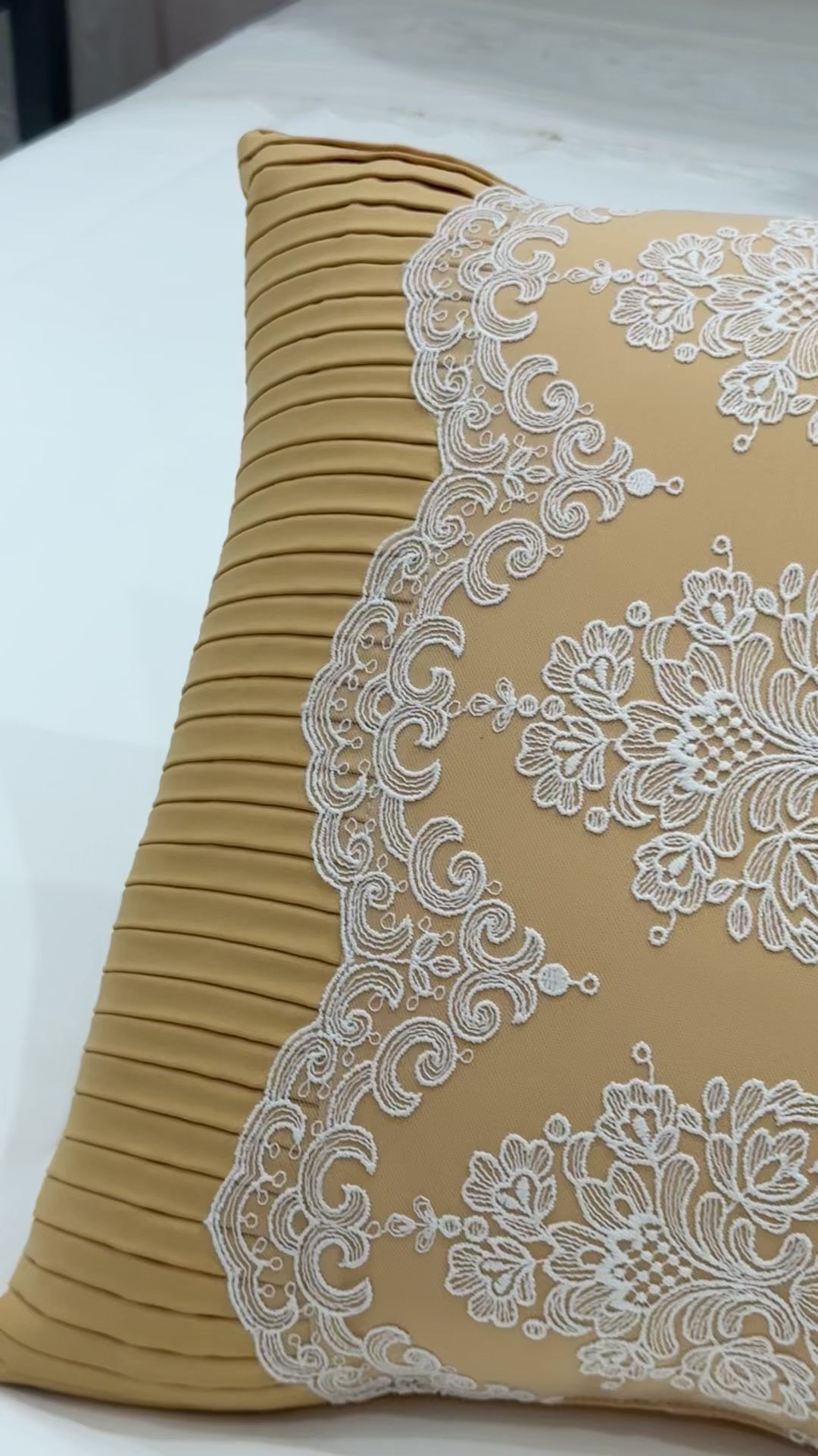 An elegant throw that pairs effortlessly with any cover you choose, designed with refined guipure lace and available in mustard yellow and light cream guipure to add a sophisticated touch to your hospital reception bed, perfect for welcoming visitors.