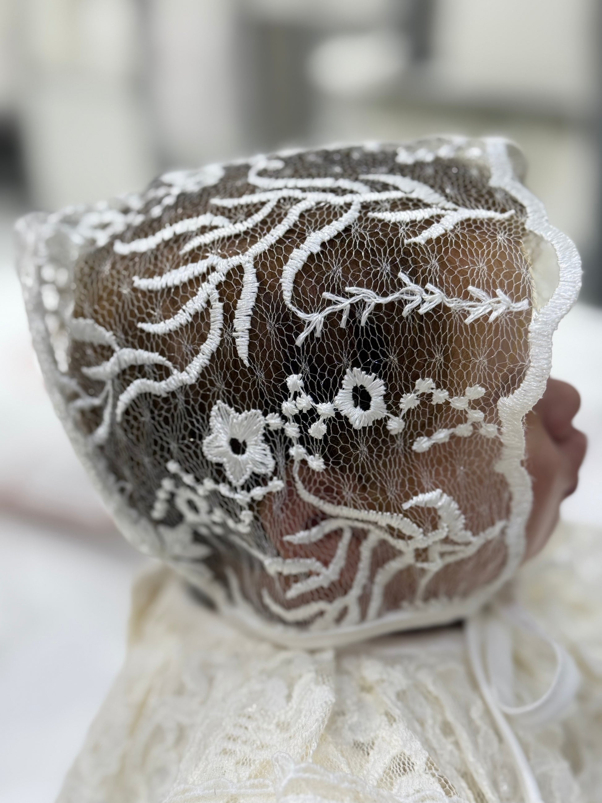 Elegant Embroidered Lace Cap