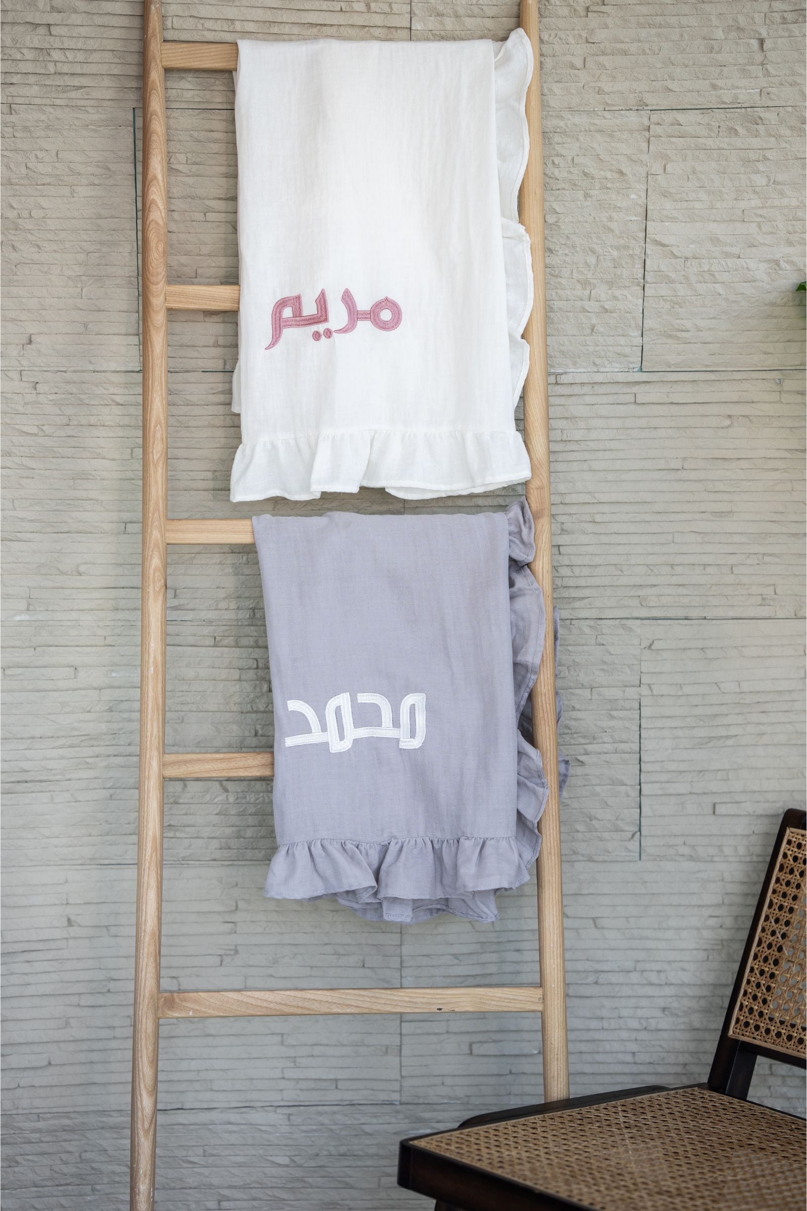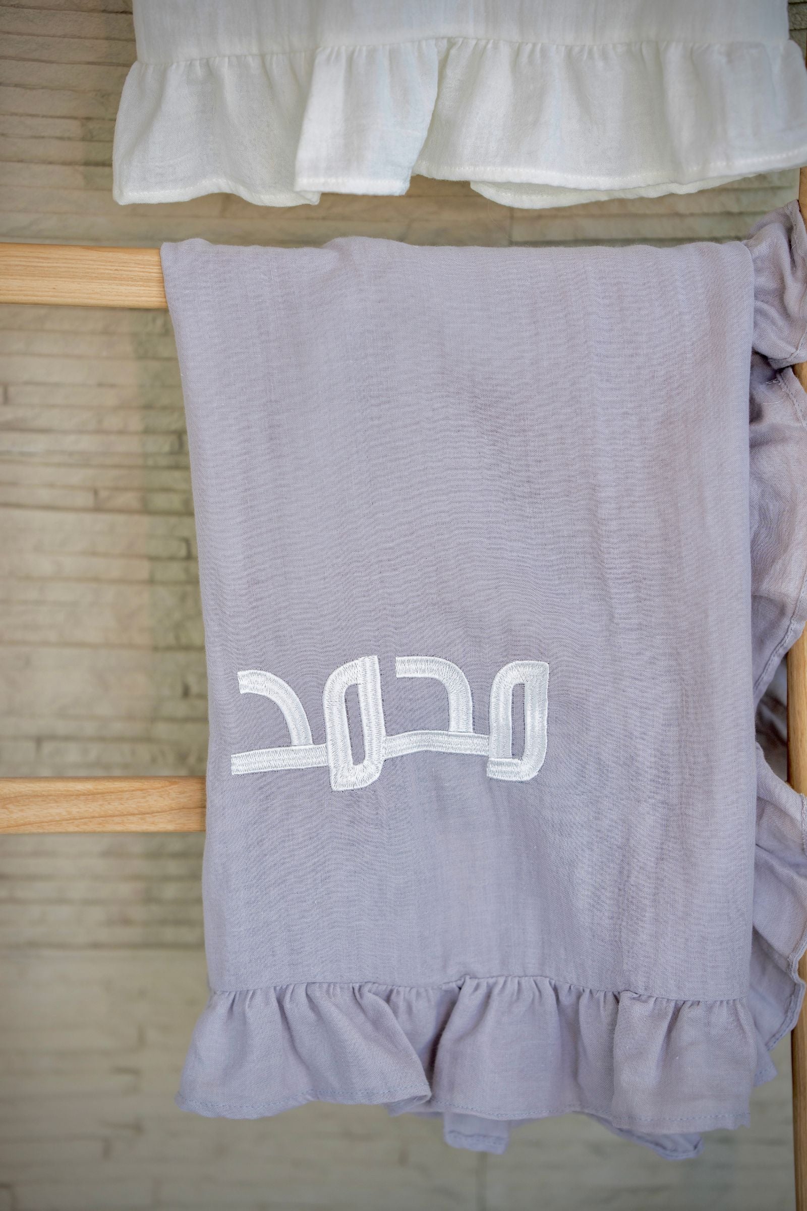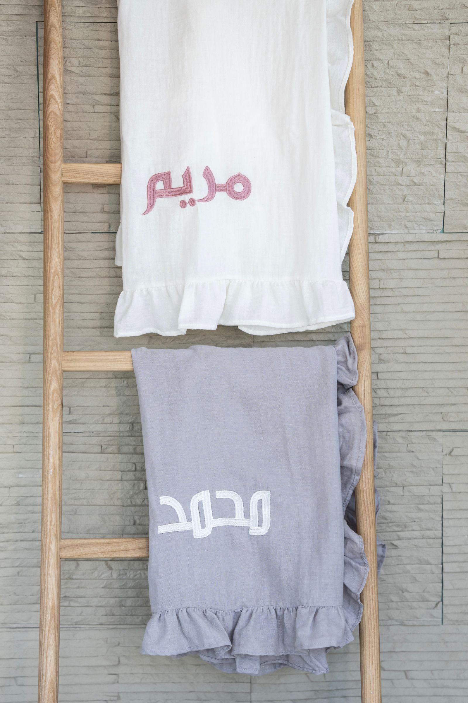 Personalized with embroidered name for a one of a kind keepsake. A blend of warmth, elegance, and everyday practicality.