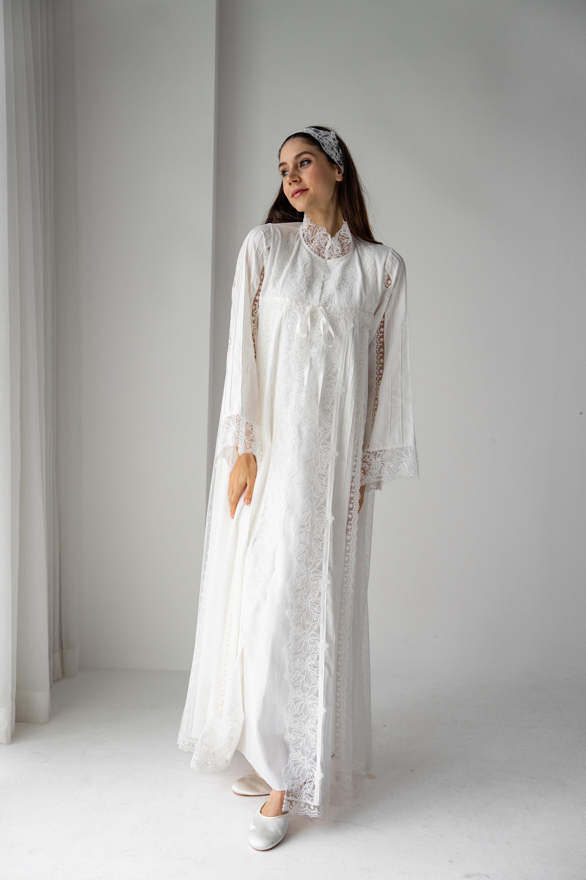 Elevate your maternity experience with this beautifully designed reception Dress, created to combine elegance, comfort, and practicality. The set features a flowing robe and a nursing friendly dress with a discreet opening, thoughtfully tailored for the modern mother.