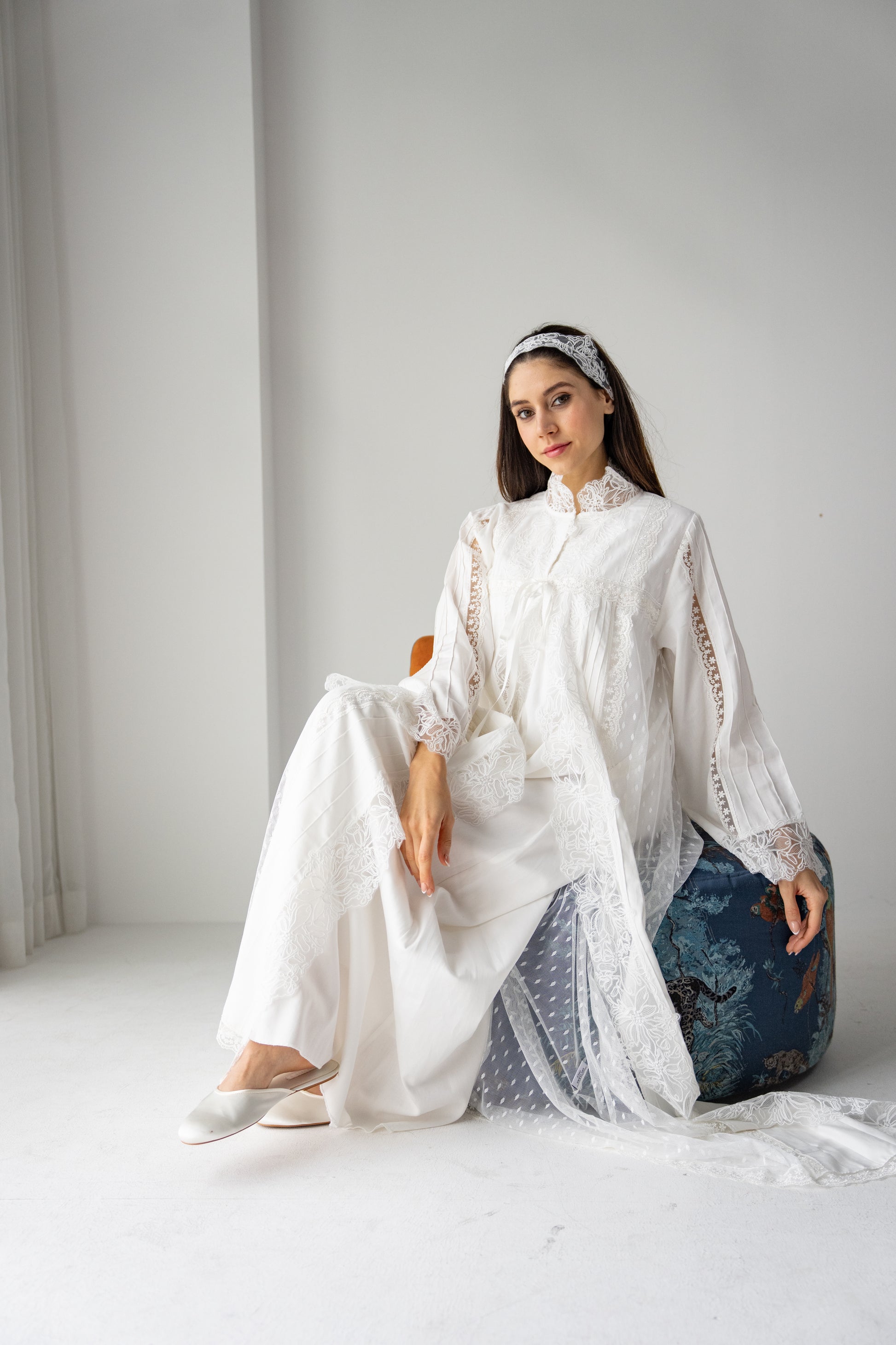 Completed with a matching hairband, this ensemble offers a refined and luxurious look perfect for hospital receptions, special moments, and memorable first photos.
